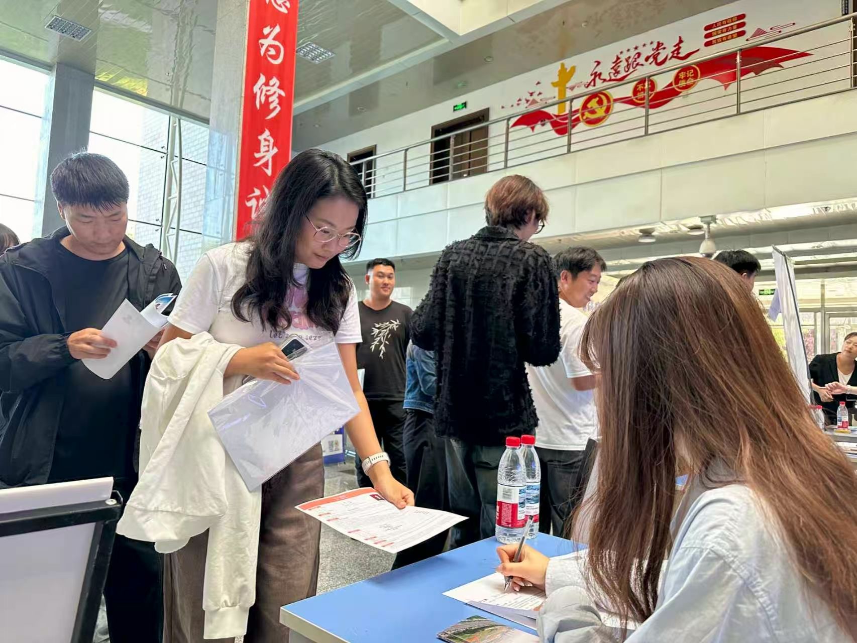 招聘会现场气氛热烈,人潮涌动。深圳慧通商务有限公司、辽宁正大食品销售有限公司、沈阳隆基电磁科技股份有限公司、辽宁沈抚辽港智能技术创新研究院有限公司等20余家优质企业现场揽才,提供的岗位类别覆盖机械、电气、软件、新媒体、销售与服务等多个专业领域。本次招聘会采用“线下+云端”同步模式,通过直播带岗实现线上线下实时互动,吸引近3000名网友在线观看点赞,打造了“零距离、精准化”的就业服务新场景。招聘会现场设立公共服务点,为毕业生提供政策咨询与答疑服务。本次活动累计接待咨询400余人次,收取求职简历232份,有效推动人才与岗位精准对接,为毕业生打通高质量就业渠道,也为企业输送优质人才。