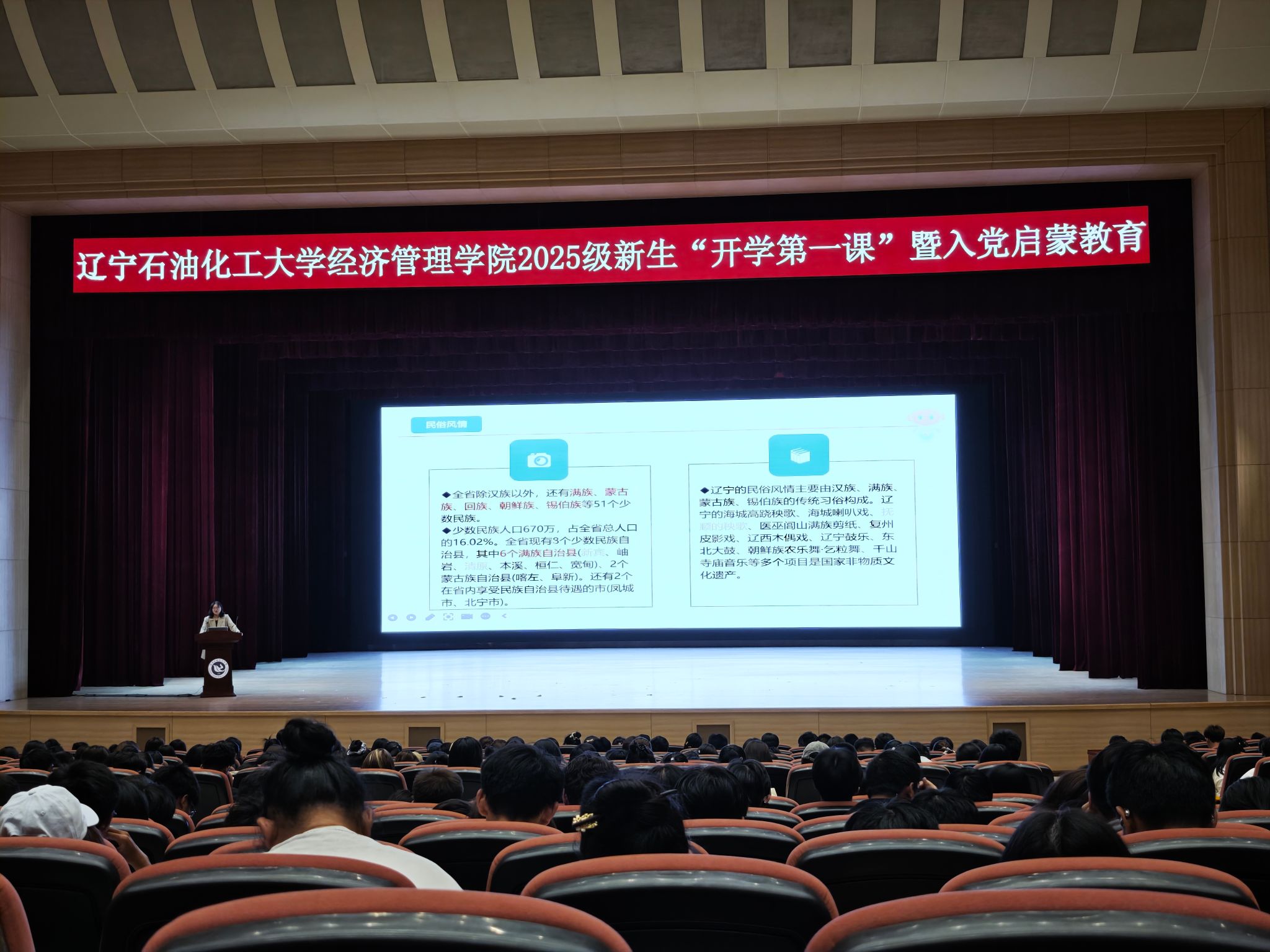大会伊始,范宁老师以“山海有情,天辽地宁”为主题,围绕省情市情、校史文化、学院特色及大学生活规划等多个维度展开,为新生带来了一场内容丰富、意义深远的入学教育。