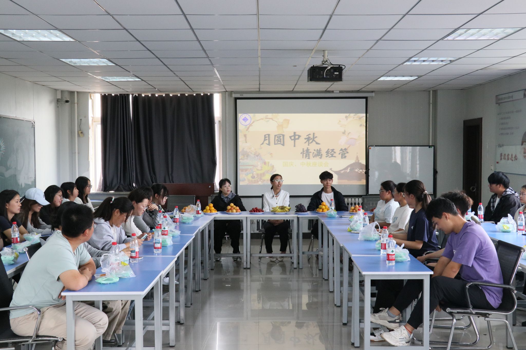 丹桂飘香,月圆人聚。在中秋佳节来临之际,为让2025级新生缓解思乡之情,感受到学院集体温暖,并帮助新生尽快适应大学生活,经济管理学院于9月30下午在经管410会议室举行了“月圆中秋,情满经管”中秋慰问座谈会。学院党委副书记崔笑宇、团委书记于宁、辅导员孙宇欢与2025级新生代表们齐聚一堂,共话佳节,畅谈未来。