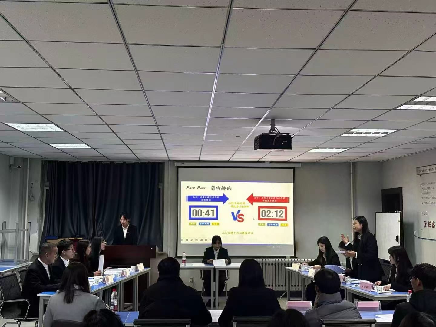 12月3日决赛各环节亮点纷呈:一辩立足经管专业知识,层层拆解逻辑、明晰核心观点;二、三辩反应敏捷,攻防有度,在针锋相对的问答中尽显临场应变能力;自由辩论你来我往、妙语连珠,精彩辩驳频频点燃现场气氛,赢得阵阵掌声;四辩提纲挈领梳理观点、回应分歧,为整场赛事画上圆满句号。